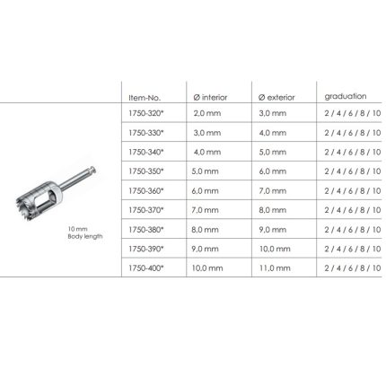 1750-320*  2,0 mm  3,0 mm  2 / 4 / 6 / 8 / 10